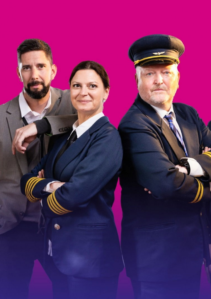 Spolu s nami budú na palube tohto lietadla cestovať dvojzmyselný humor, kus natlakovanej satiry a nezbedná posádka v zložení Lujza Garajová Schrameková, Juraj “Šoko” Tabaček, Dominika Richterová a Peter Sklár.