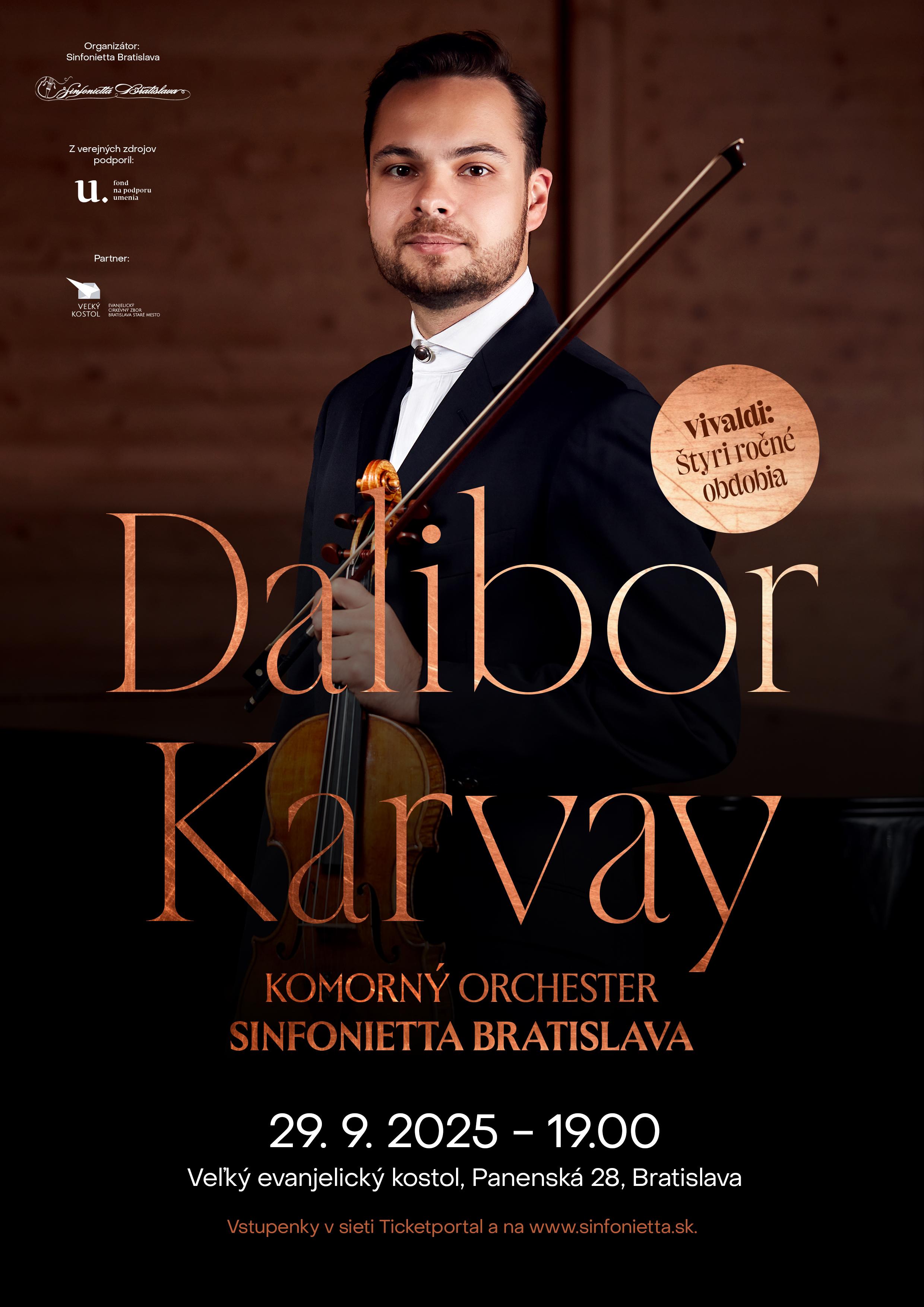 Slovenský husľový virtuóz Dalibor Karvay, ktorý toto leto oslávil 40. narodeniny, sa predstaví na koncertnom turné v štyroch slovenských mestách. Spolu s komorným orchestrom Sinfonietta Bratislava pod umeleckým vedením Pavla Bogacza uvedú Vivaldiho "Štyri ročné obdobia".