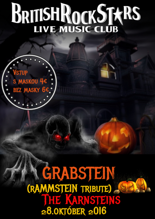 koncert Halloween Night: Grabstein (Rammstein tribute), The Karnsteins rockhalloween Halloweenska párty s kapelami Grabstein (Rammstein Tribute) a horror-punkovými The Karnsteins. Po koncertoch bude prebiehať hororová oldies party.