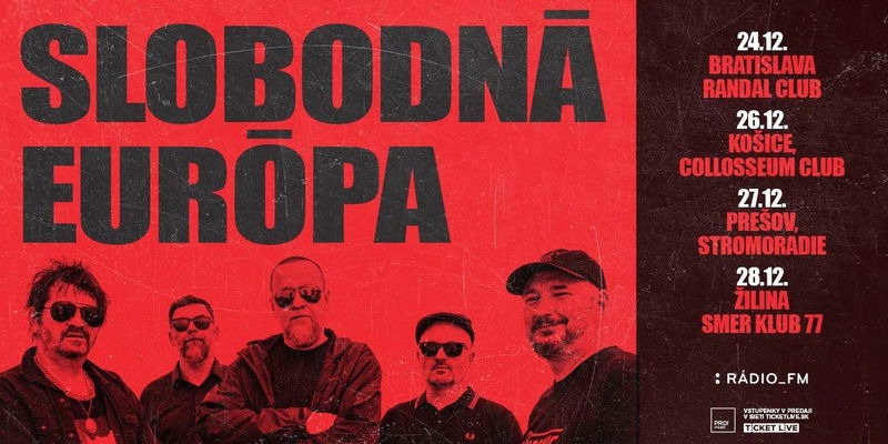 Tohtoročné turné kapely Slobodná Európa už tradične vyvrcholí predpolnočným vianočným koncertom v klube Randal v Bratislave. Príďte si vychutnať sviatočné dni v spoločnosti kapely, ktorá už viac než tri desaťročia formuje slovenskú scénu.