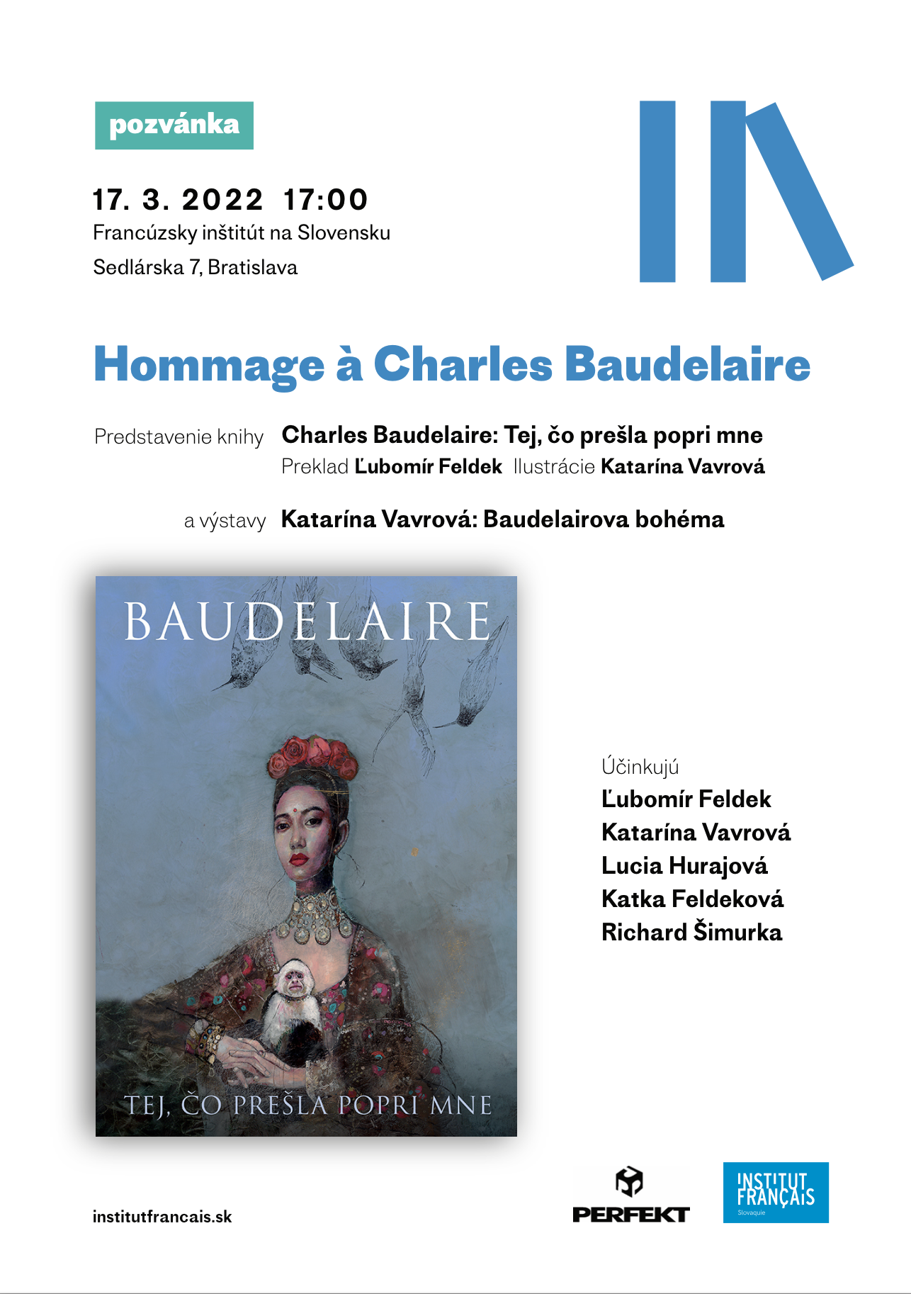 Tej, čo prešla popri mne je výnimočný dvojjazyčný výber z diela Charlesa Baudelaira v preklade Ľubomíra Feldeka s pôsobivými ilustráciami od Kataríny Vavrovej. Výber chce sprítomniť jedného z najväčších francúzskych básnikov, významného predstaviteľa svetovej moderny.