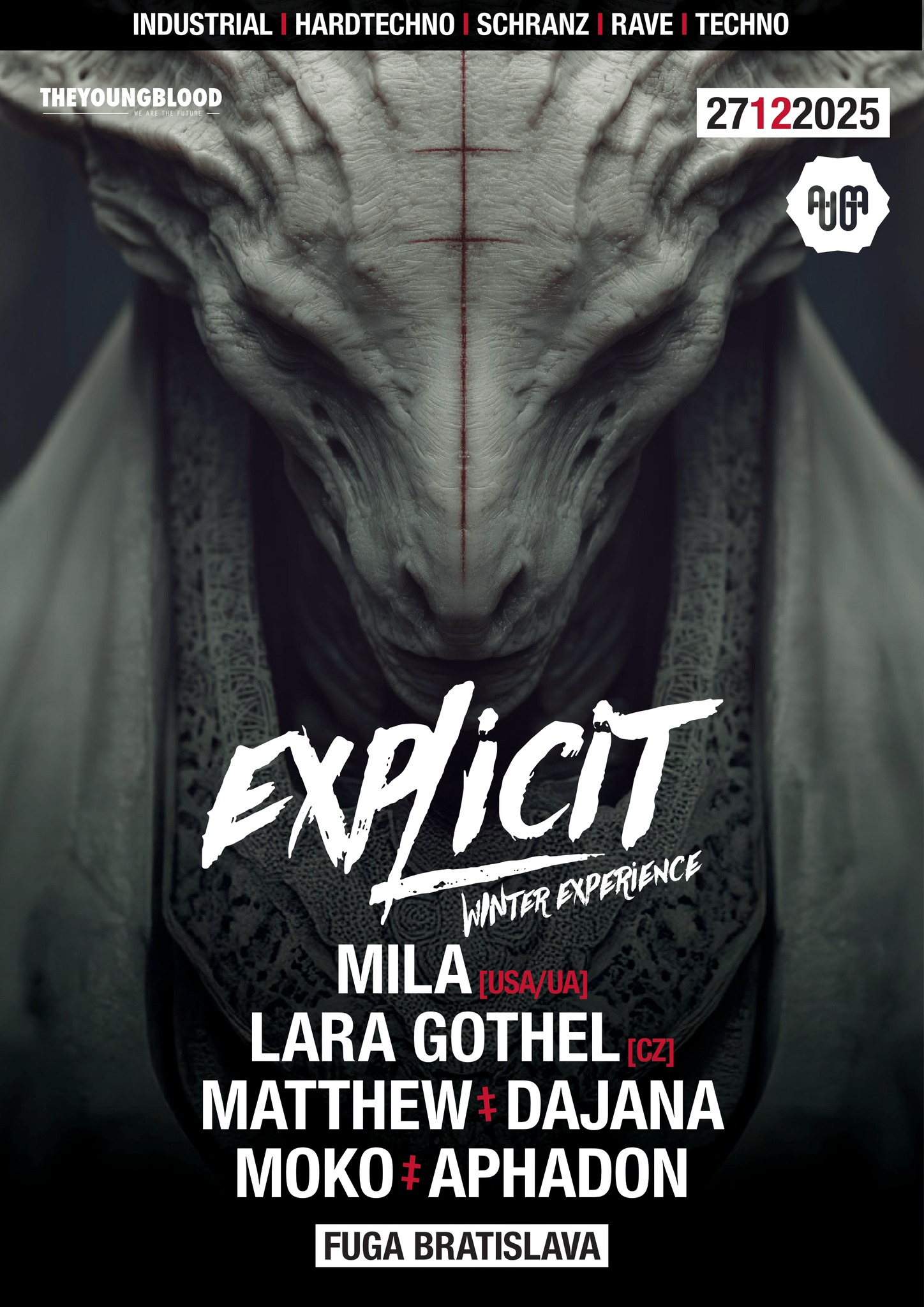 party Explicit technoraveindustrial Hardtechno - schranz - industrial vo Fuge.Bratislavská klasika medzi tvrdými subžánrami techna prinesie ďaľší netradičný line-up.