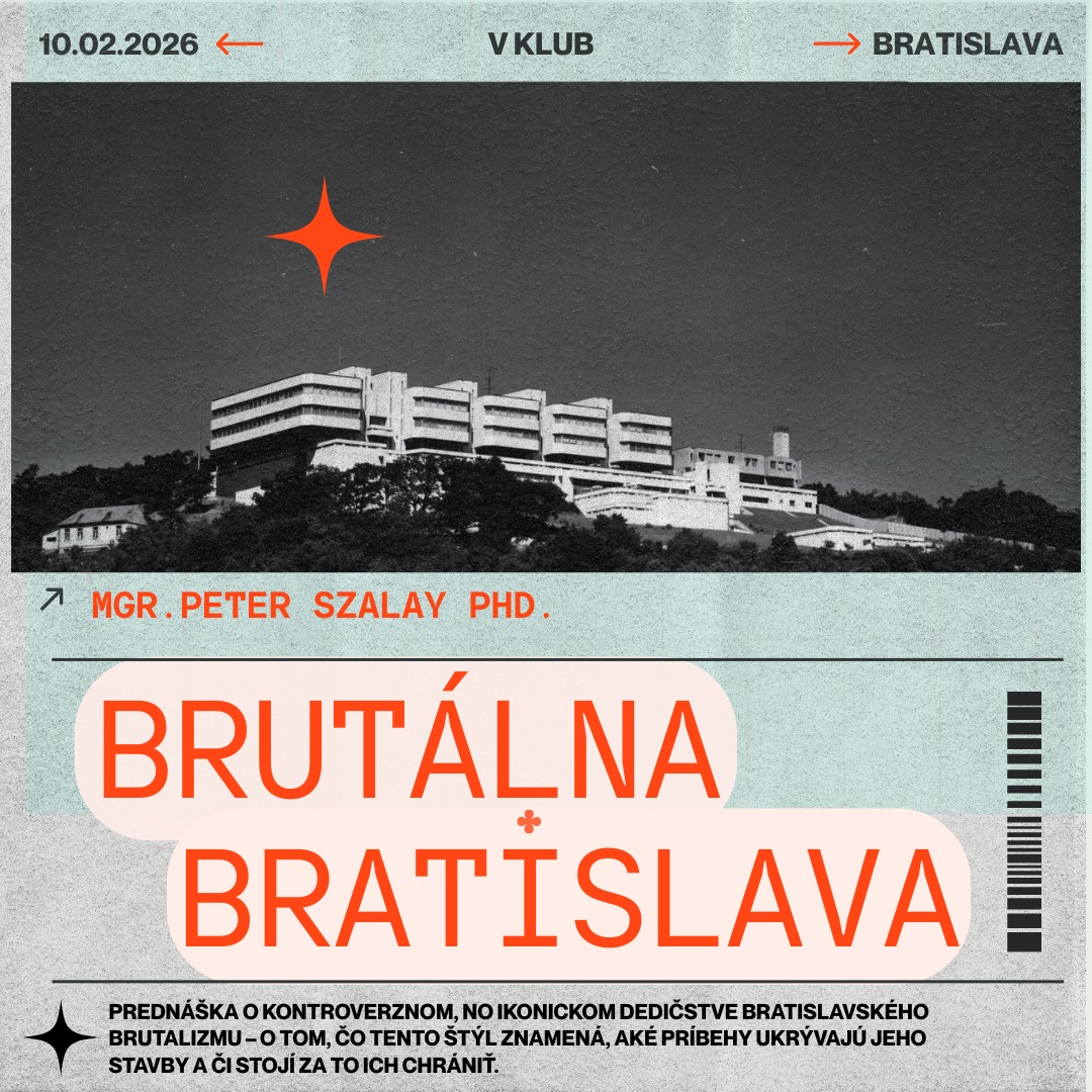 V prednáške sa budem venovať brutalizmu v architektúre: čo tento štýl znamená a či vôbec môžeme hovoriť o brutalizme v Bratislave. Odhalím príbehy najznámejších, ale aj takmer zabudnutých diel z tohto obdobia. Spoločne prediskutujeme, či brutalizmus môže byť krásny – a či stojí za to ho chrániť.
