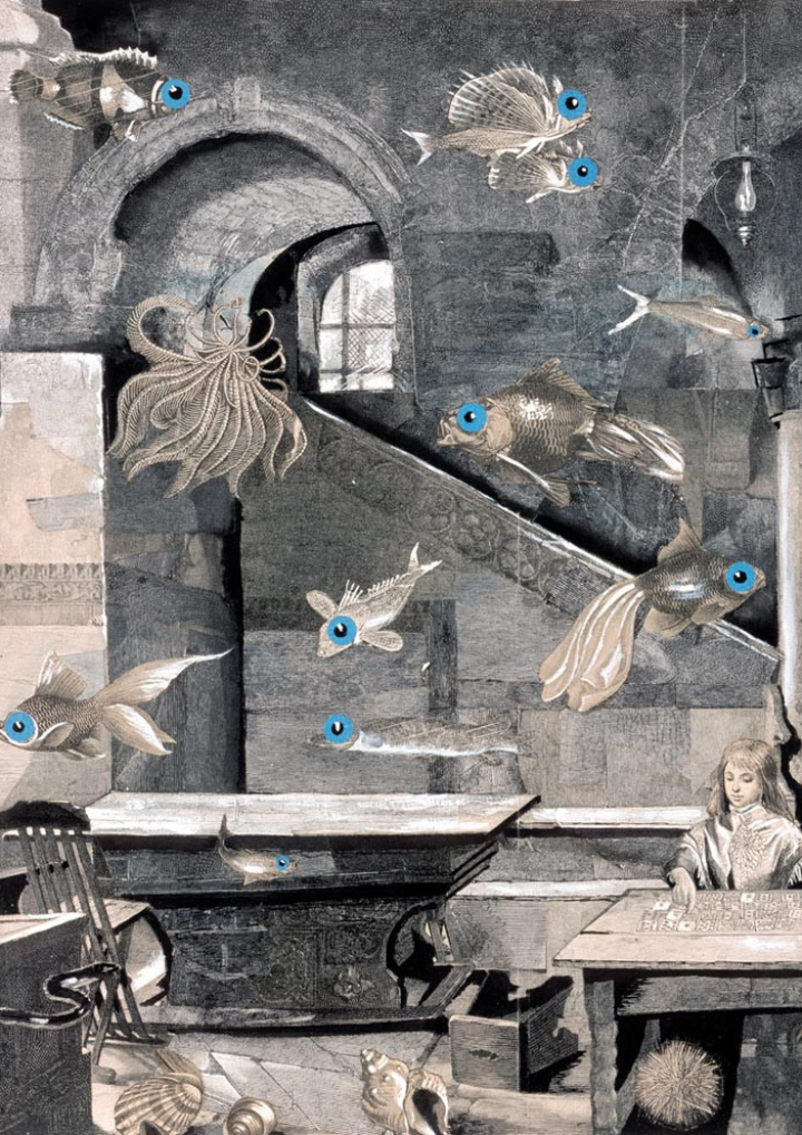 Po roku 1969 Adolf Hoffmeister nemohol vystupovať na verejnosti a organizovať výstavy. Preto sa rozhodol v júni 1973 usporiadať súkromnú výstavu vo svojom byte. Na nej predstavil svoje posledné koláže z jesene 1972 a zimy a jari 1973. Tieto farebné koláže neboli lepené z klasických xylografických tlačí zo starých periodík, ale naopak materiál k nim bol čerpaný z farebných zahraničných časopisov Elle, Marie Claire a iných. Tematicky obsahovali ponuré vízie budúcnosti sveta, najmä ak by došlo k jadrovej či ekologickej katastrofe. Odrážali atmosféru obdobia aj vlastné vnútorné prežívanie autora. Koláže dostali tieto mená: Po ľuďoch zostali na svete biele miesta, Slučka, Rozbitý život, Život a smrť, Normandský cintorín pri mori. Koláže však nemali iba takéto pochmúrne témy, ale aj iné, napríklad Rozprávka, Dary mora, pocta Beatles.