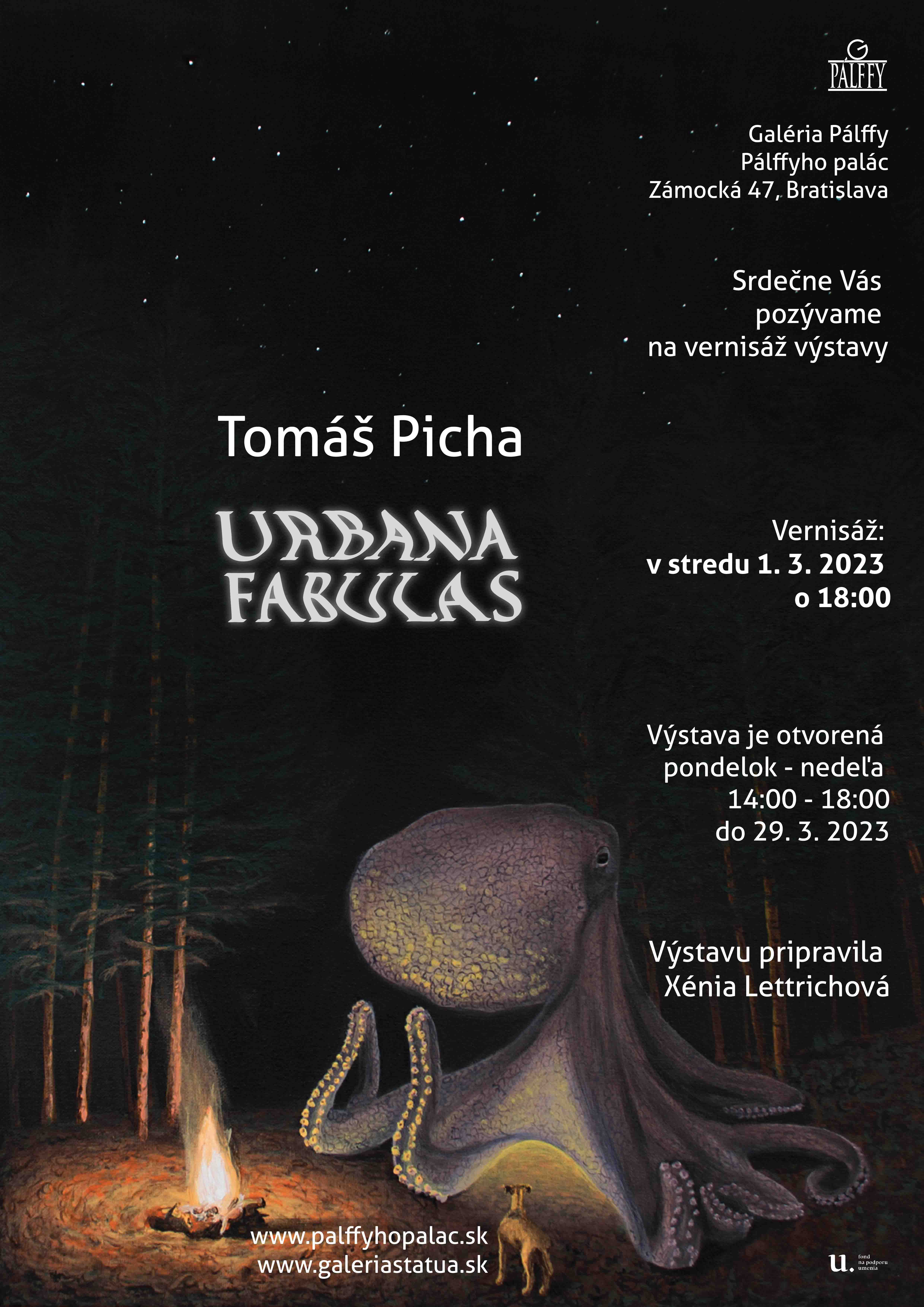 Práca s textom, bohatá symbolika, mystifikácia či tajomno a tiež občasná snaha posunúť maľbu až za okraj rámu, to všetko sú významné znaky jeho tvorby.Okrem maľby, ktorá je jeho primárnym médiom na výstave priblíži tiež drobné hlinené plastiky, ktorým sa rovnako venuje posledné roky a takisto projekciu videí, ktoré tvoria súbor animácií jeho obrazov.