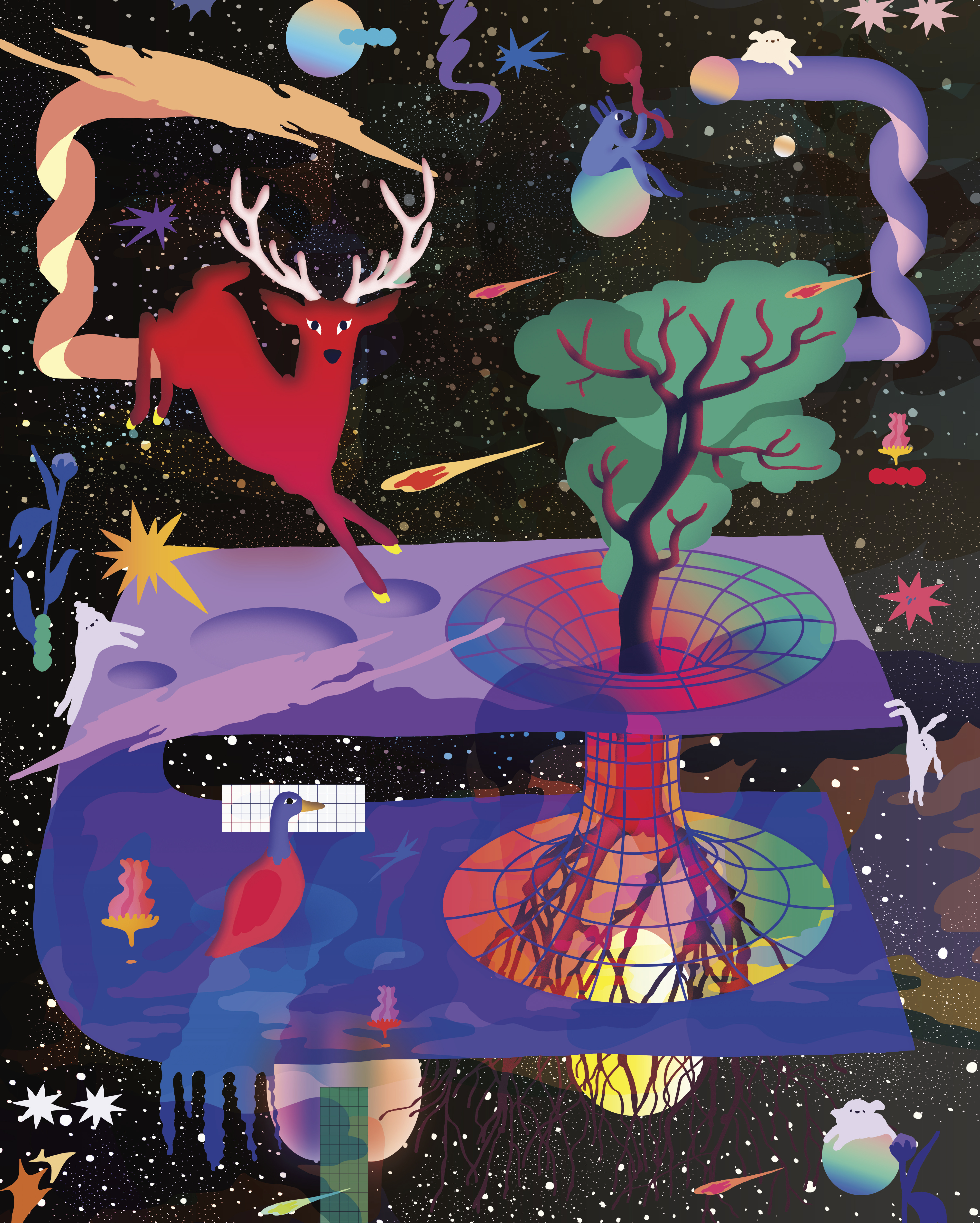 A čo keby sme o digitálnej ilustrácii tentoraz premýšľali inak, než len ako o „kresbe v počítači“? Keby sme odstúpili od rastrov, pixelov, ditheringu, aliasingu, kompresných artefaktov, low-polov? A pokúsili sa len zachytiť ten proces, keď sa premýšľanie o príbehoch začalo meniť nielen nástrojmi, ale keď sa rozhýbal celý priestor, v ktorom ich ukladáme? Veď už to zďaleka nie sú len „papierové“ knihy a časopisy zarovnané v knižniciach. Pribúdajú webtoony, ilustrované stories, e-knihy, newslettery, digitálne magazíny...